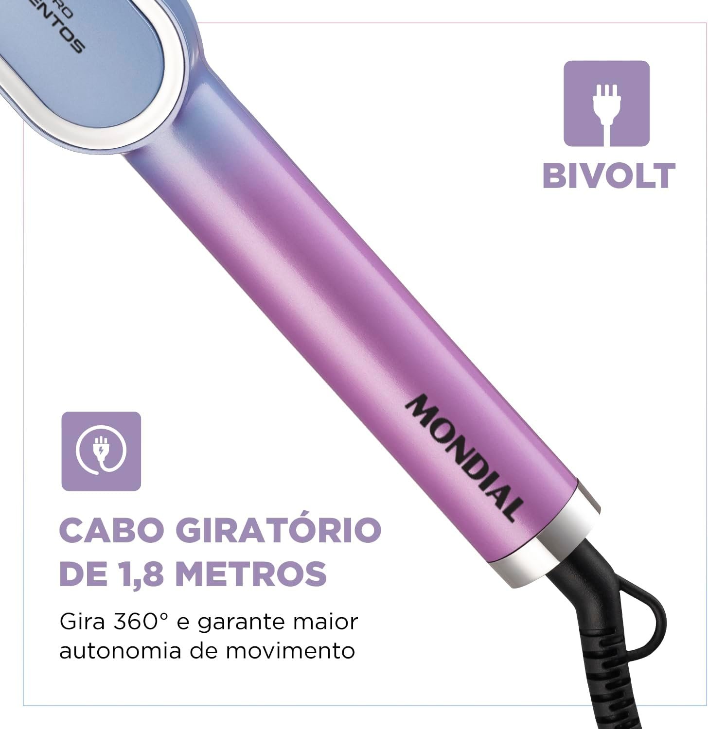 BIVOLT AUTOMÁTICO Pode ser utilizada em ambas voltagens: 127V e 220V. Liberdade para usar sua escova em qualquer lugar!